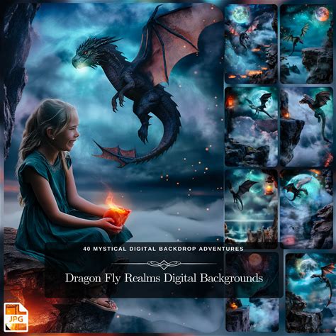 Dragon Fly Realms Digital Backgrounds: 40 Mystical Digital Backdrop Adventures - Instant Download JPG Files For Epic Dragon Overlay Edits